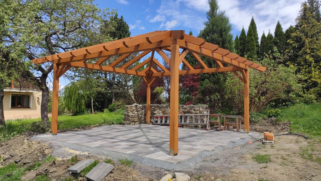 Altán 5x5m s valbovou střechou a asfaltovým šindelem